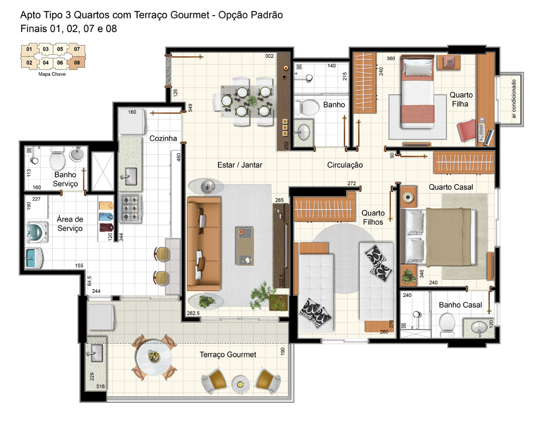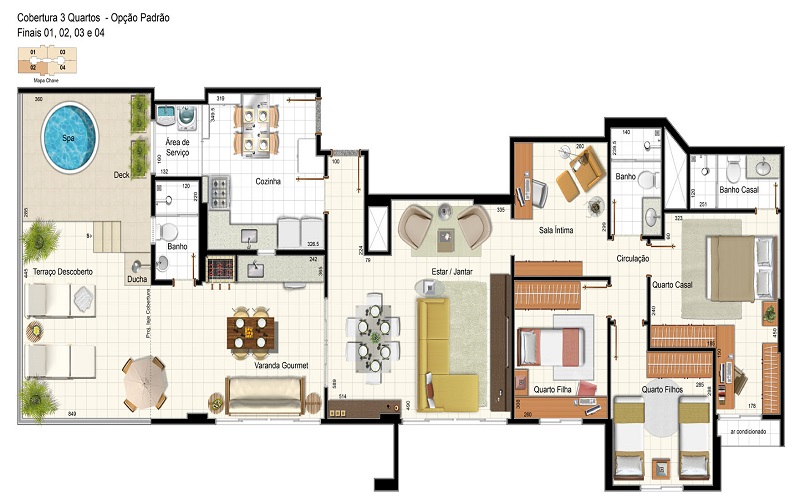 3 Quartos (1 Suíte)