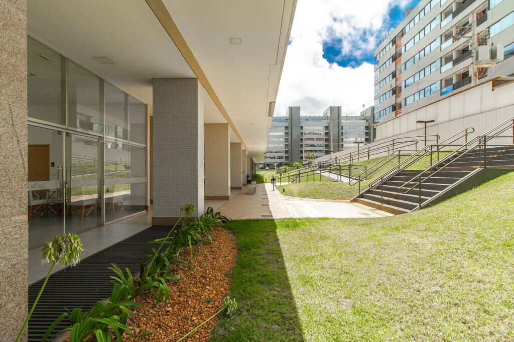 • Paisagismo com espécies adaptadas ao clima do cerrado, demandando menor necessidade de irrigação.